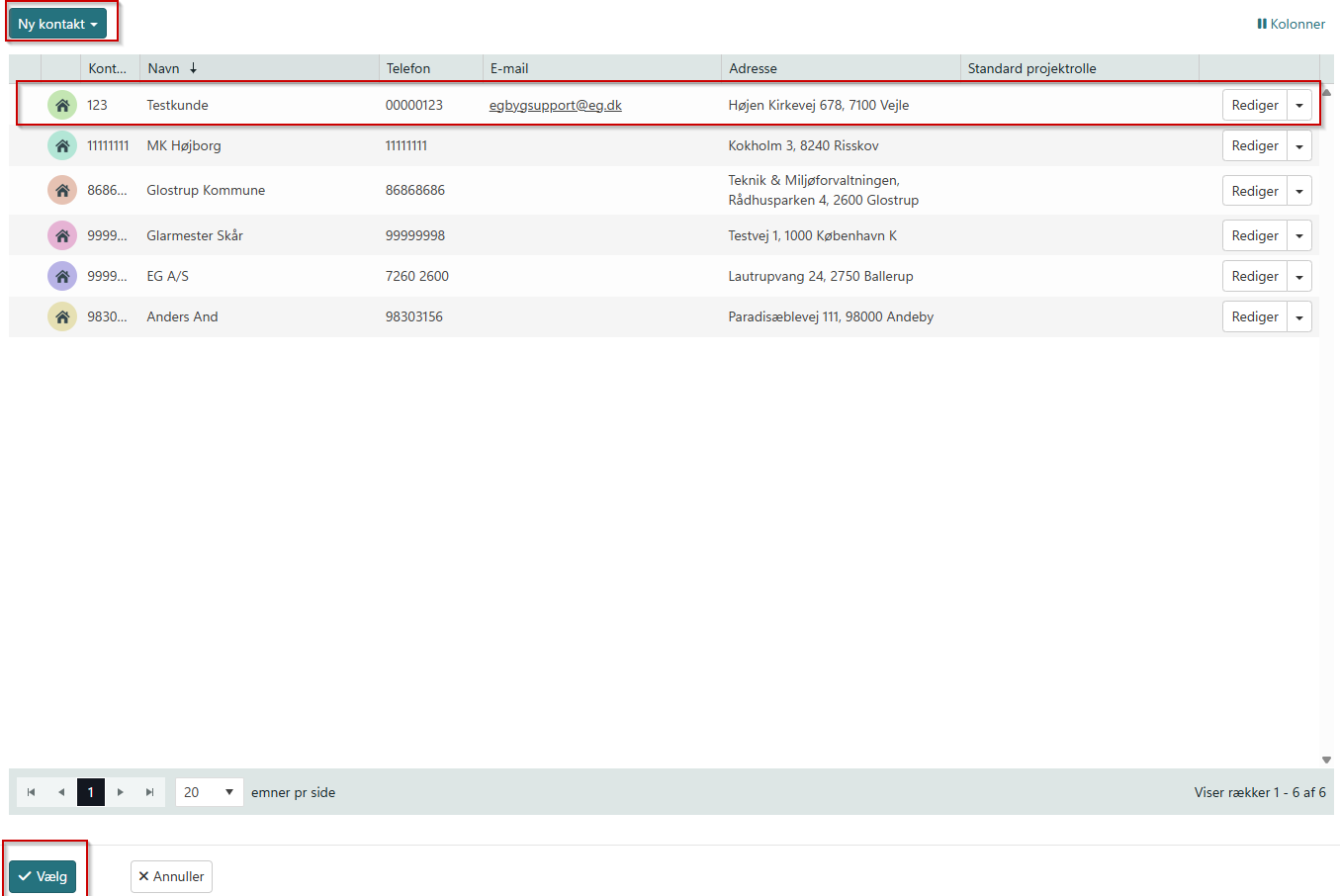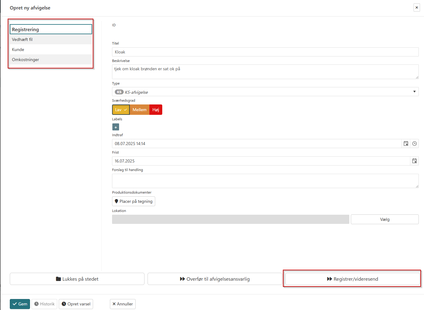 Udfyld de punkter der ønskes og klik på knappen 'Registrer/Videresend'.