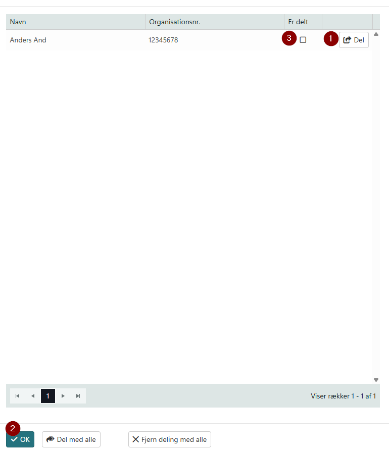 - Klik på knappen 'Del' og vælg de eksterne brugere du ønsker at dele med.