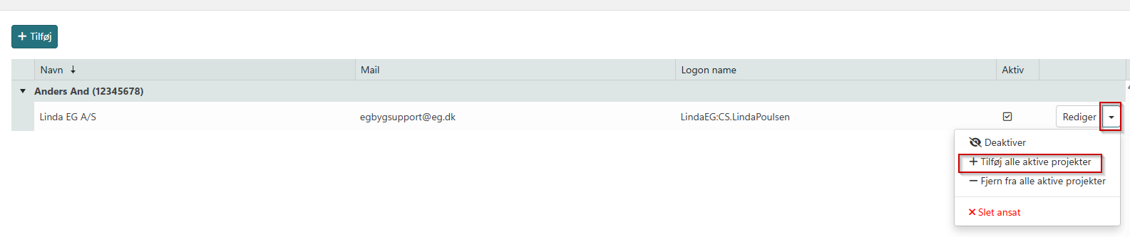 Er det alle aktive projekter kan du tilføje brugeren ved at trykke på pilen ude til højre i redigerings-knappen.